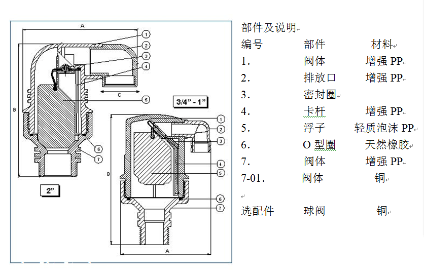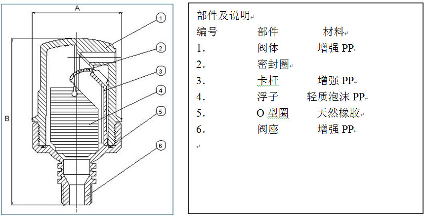 4.阀体由高强度塑料制成,其他构件由特别选择的耐腐蚀材质制成。